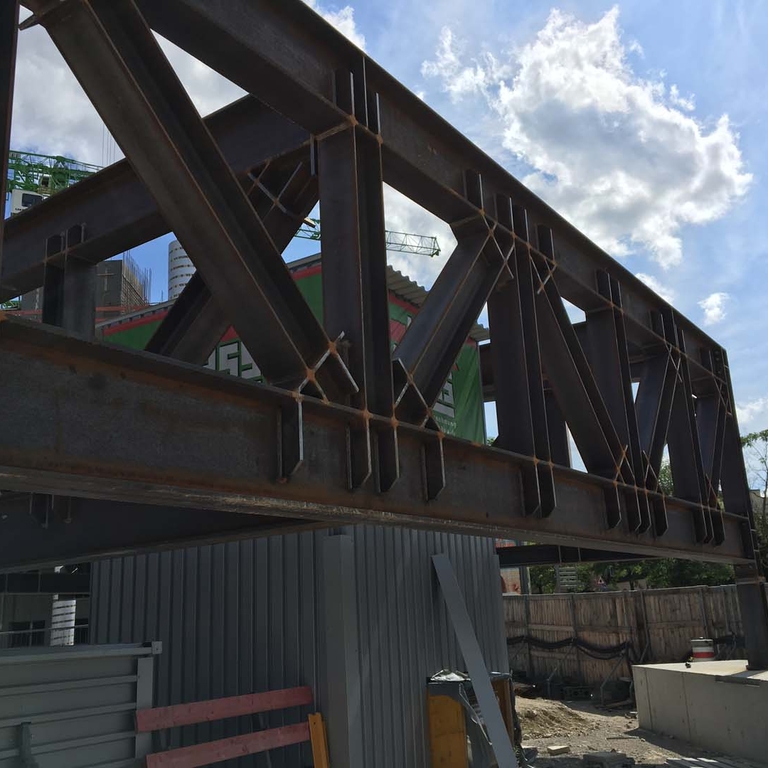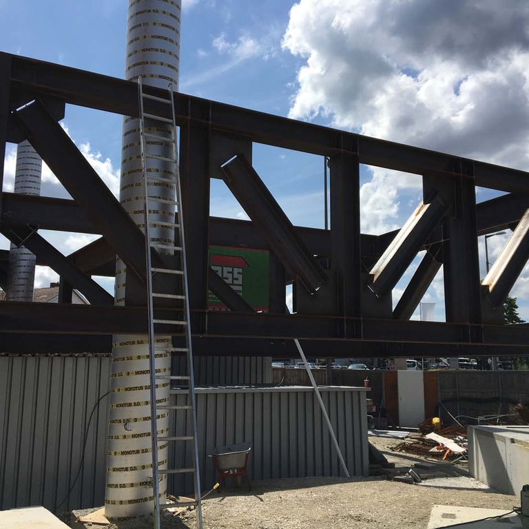 Schwere Abhängekonstruktionen, massive Hilfskonstruktion aus Stahl