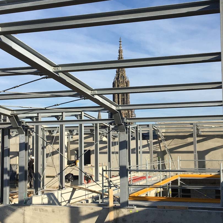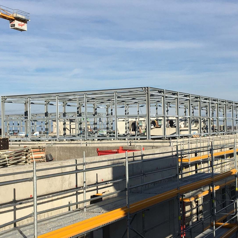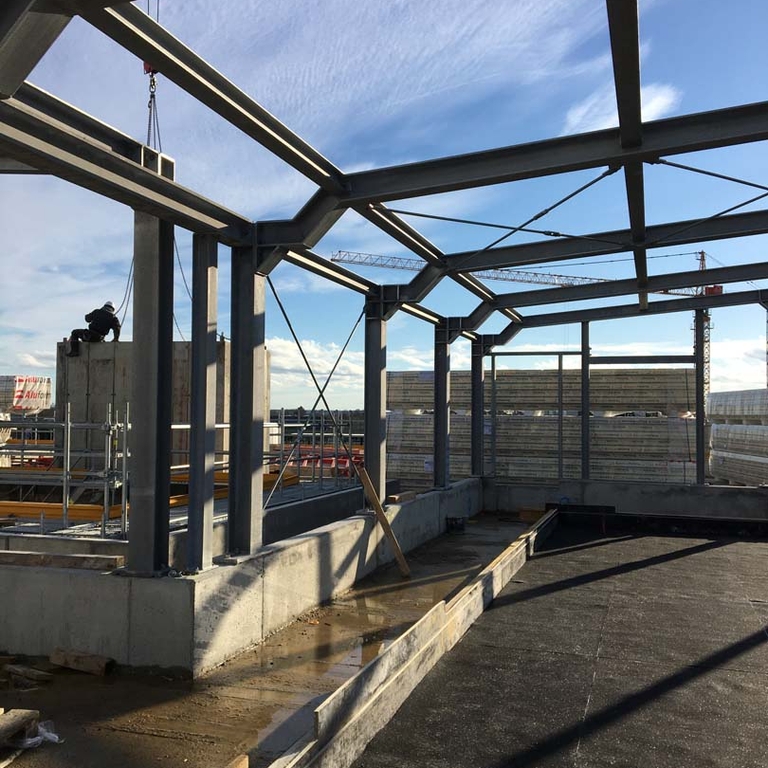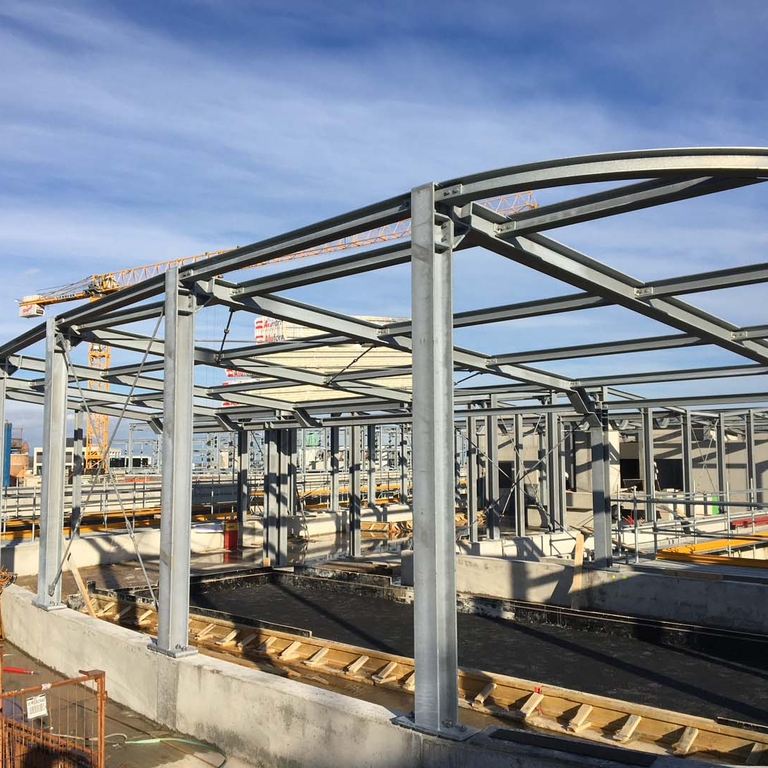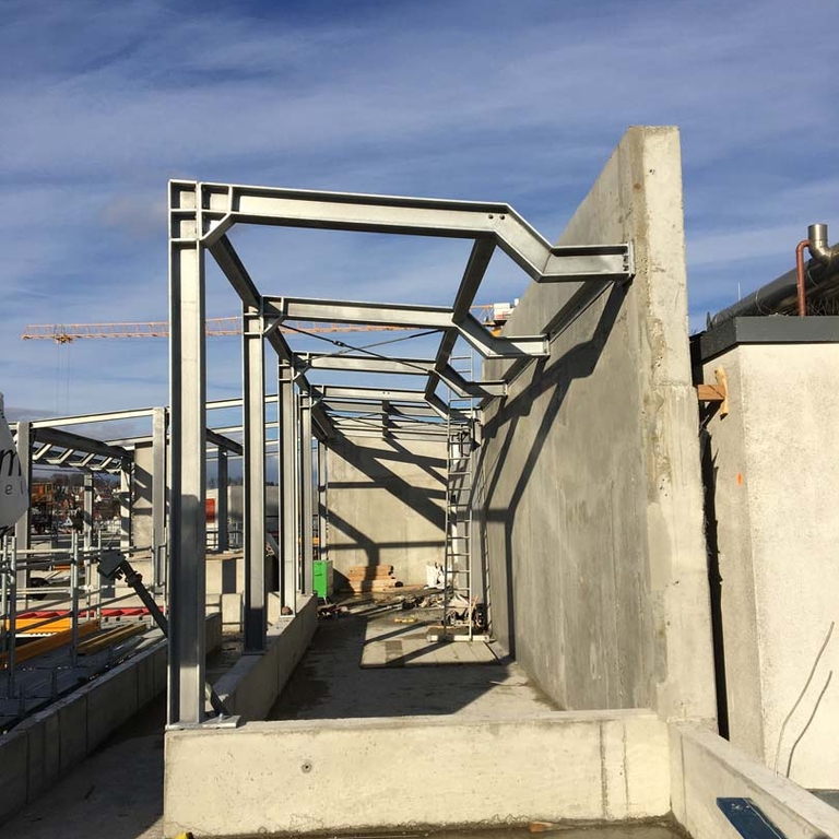 Einhausung von Technikzentralen, Stahlkonstruktion zur Einhausung von Technikzentralen auf dem Dach